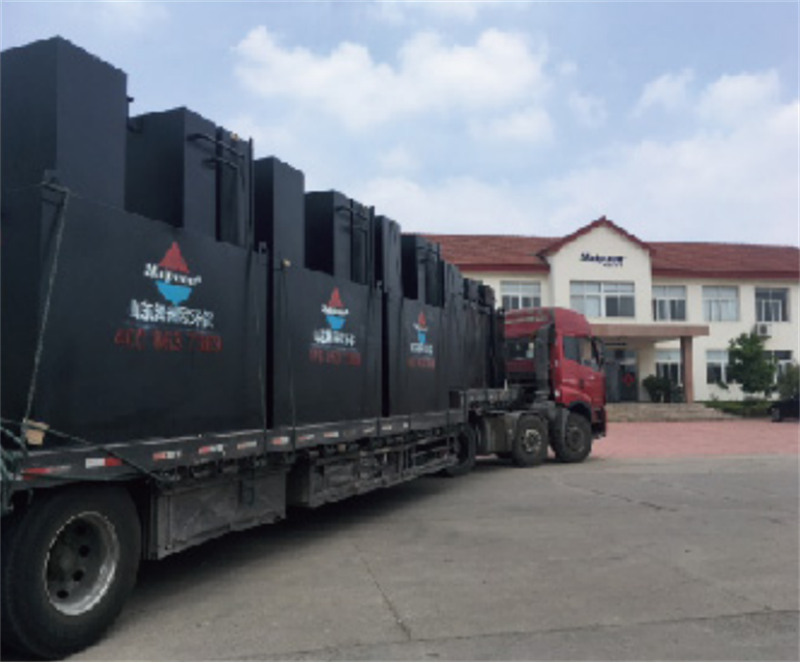 立式集成布局:將調(diào)節(jié)池、生物池、膜池、消毒池整合為立式箱體,占地面積僅為傳統(tǒng)設(shè)備的 1/4(如處理 100m³/d 僅需 15㎡);