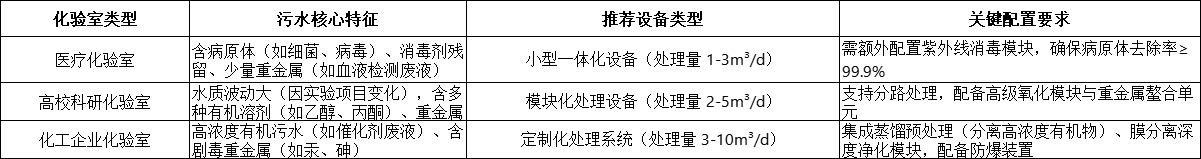 三、化驗(yàn)室污水處理設(shè)備選型:3 類場(chǎng)景的定制化方案