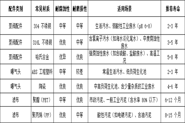 運(yùn)維便捷性原則:降低后期維護(hù)成本優(yōu)先選擇結(jié)構(gòu)簡單、易拆卸的配件,減少維護(hù)工時(shí)。例如,快裝式曝氣頭無需工具即可拆卸,維護(hù)時(shí)間可縮短至傳統(tǒng)曝氣頭的 1/3;選擇濾布時(shí),優(yōu)先選用可快速更換的卡扣式濾布,而非螺栓固定式,避免因拆裝復(fù)雜導(dǎo)致停機(jī)時(shí)間延長。